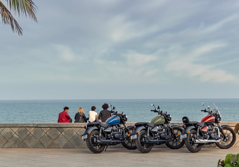 La Meteor representa la esencia de la conducción, el espíritu de la travesía, con un diseño clásico y atemporal. La Meteor está preparada para que sea tu moto en el día a día y para esos viajes del fin de semana.
